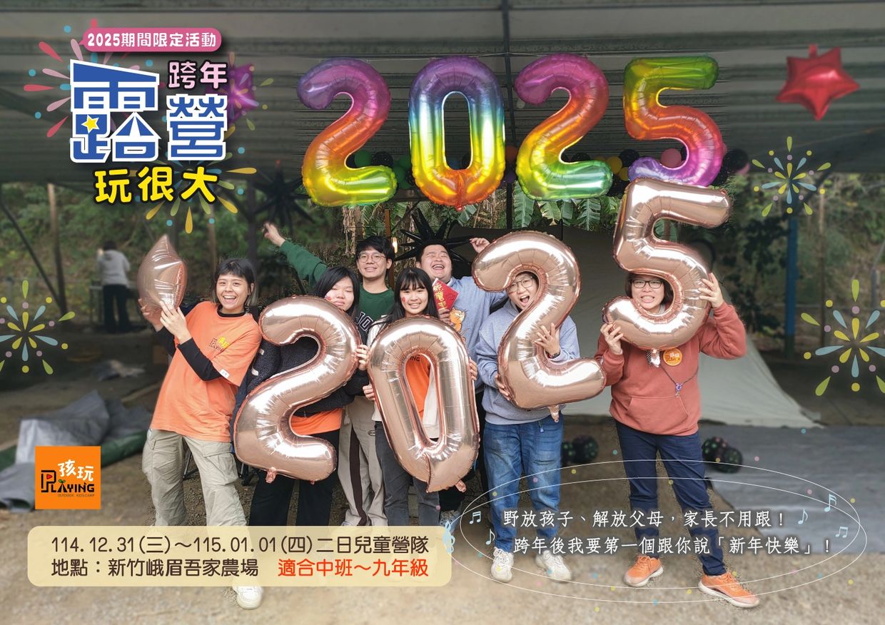 *此活動僅提供孩子參加!若家長想一同參與請報名【親子露營-當我們玩在一起~快閃跨年趣】